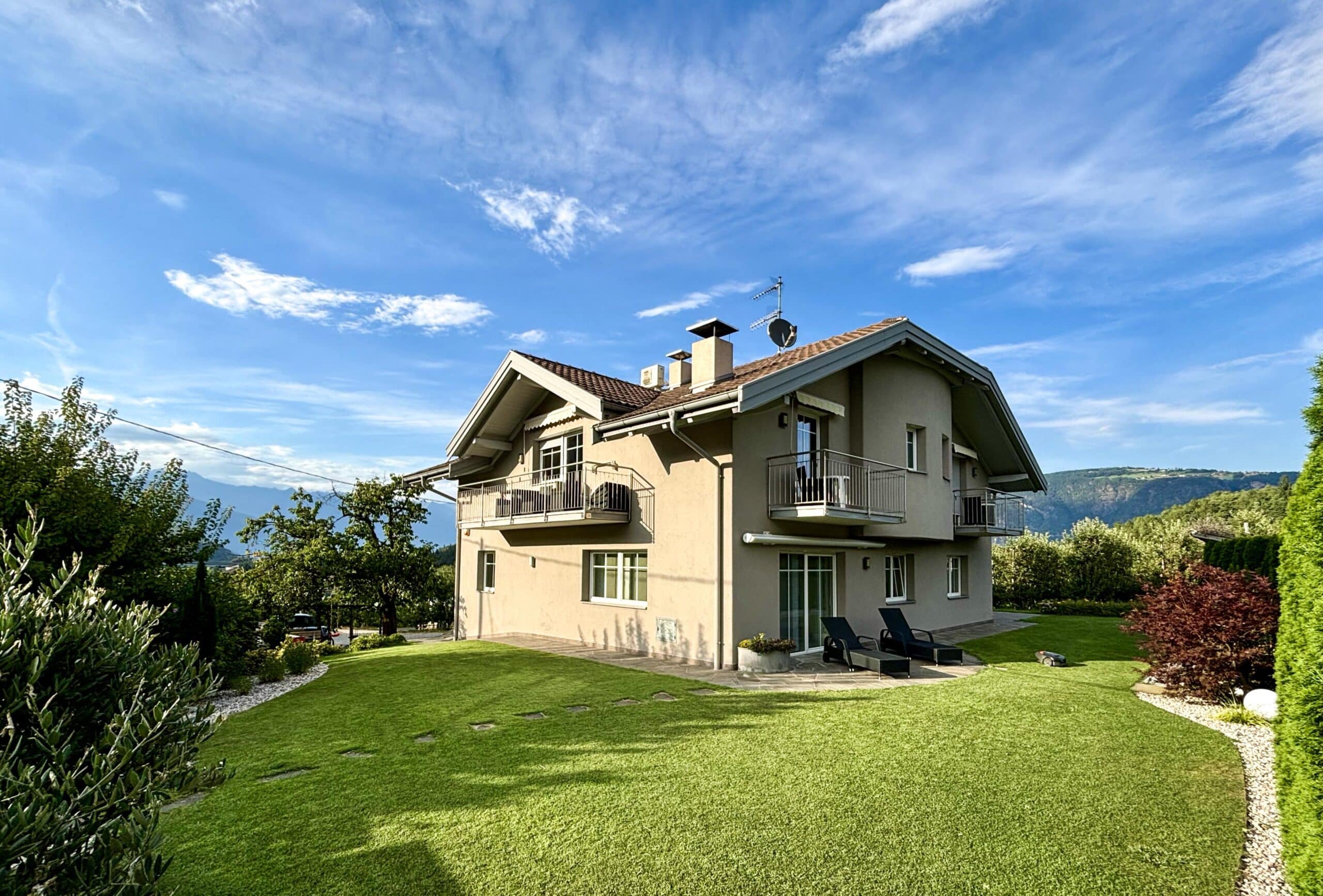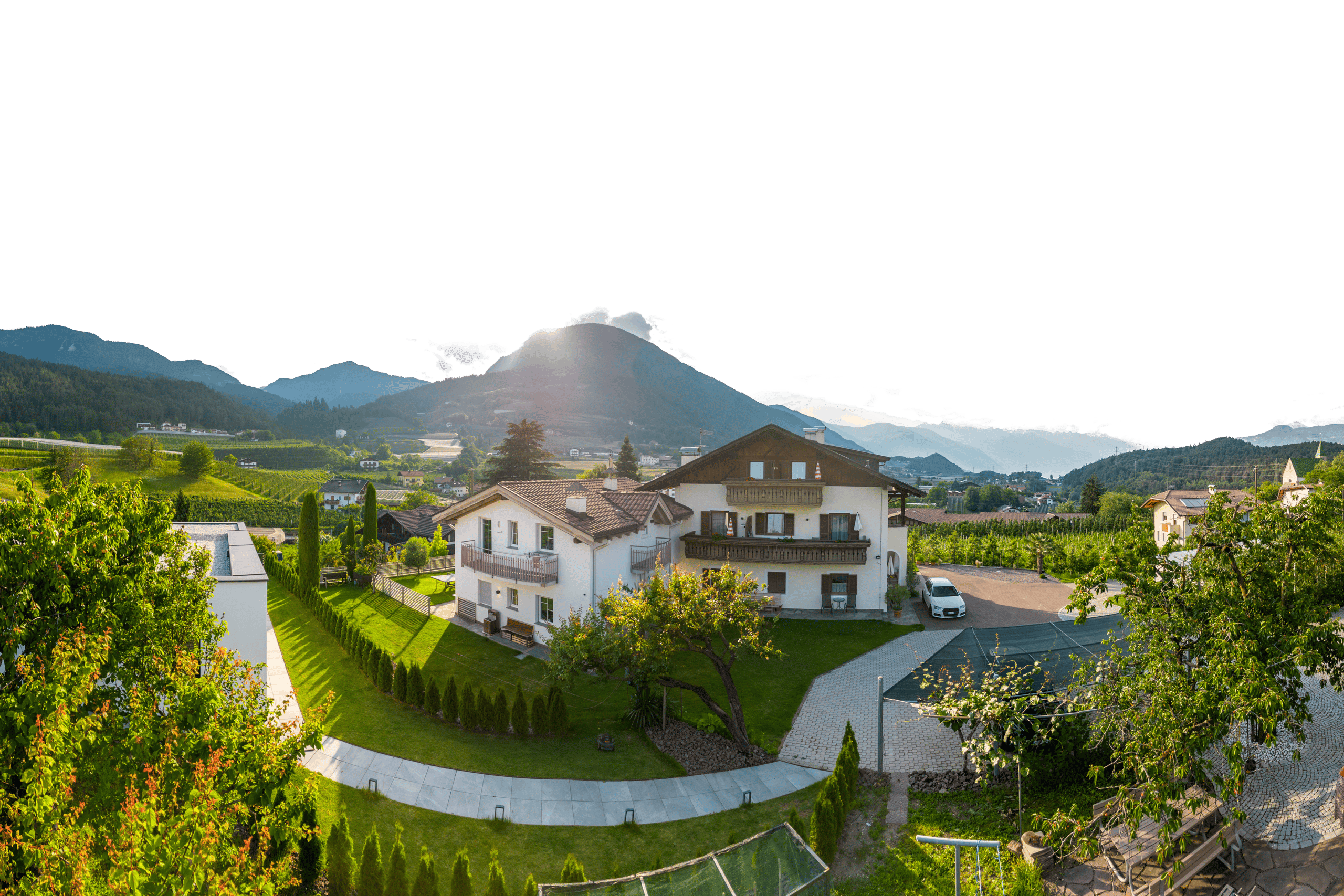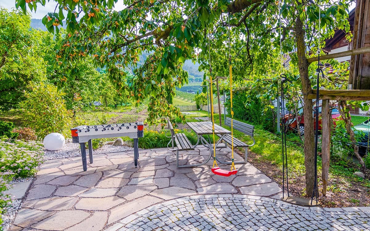 Unser Haus befindet sich in einer einmaligen ruhigen Lage, in Mitten von gepflegten Obst- und Weingärten am Ortsrand von Prissian. Nur wenige Gehminuten von unserem Haus entfernt erreichen Sie das historische Dorfzentrum, viele Sehenswürdigkeiten und naturbelassene Wanderwege. Ihr Auto können Sie bequem in unserer großzügigen Tiefgarage abstellen. Mit unseren 65m² 2-Zimmer Wohnungen , Schaukeln & Tischfußball im Garten und einer großen Wiese zum sonnen und spielen, ist unser Haus auch bestens geeignet für Kinder und Familie.
